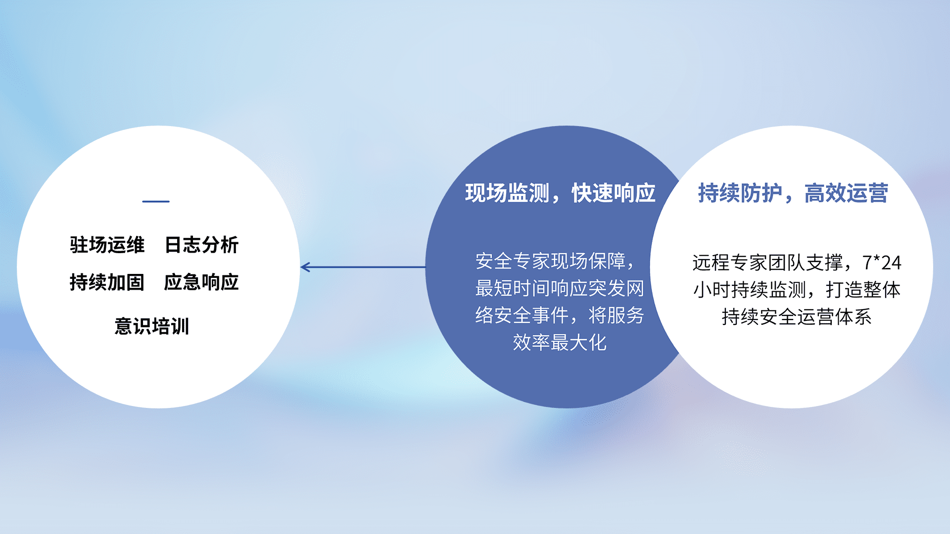 针对客户行业特性,,,提供专属的一站式安全管理服务,,,,帮助客户全面感知网络空间威胁,,,通过安全专家的线上、、、线下防护支持,,,,实现风险闭环,,将安全保障常态化,,,,为客户打造常态化安全运维运营服务。。。